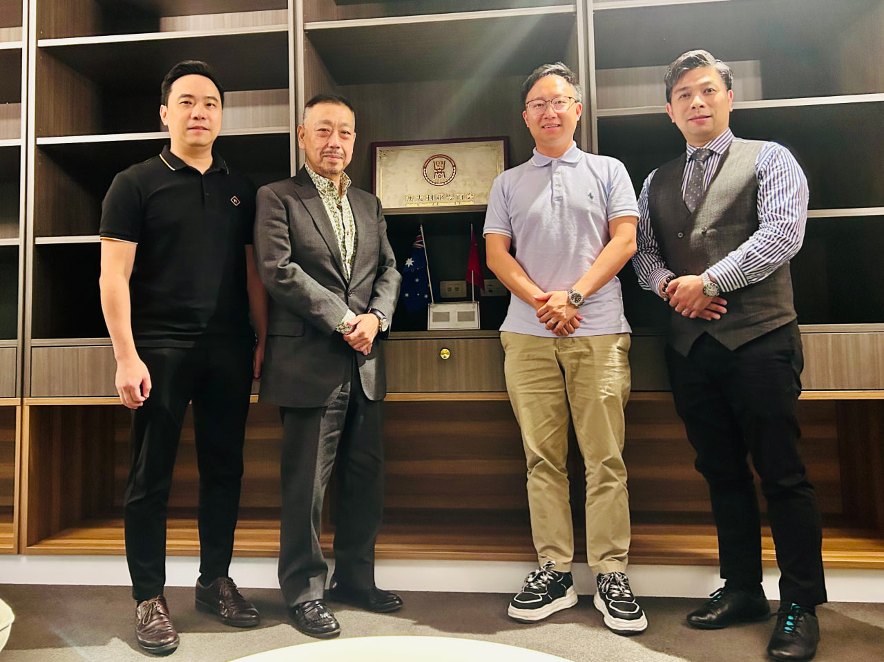 3月4日,澳大利亚粤商会在其办公室热情接待了西澳大利亚粤商会会长蔡嘉毅的来访,会见中澳大利亚粤商会会长王国忠、执行会长杨涛以及运营总监James Ji出席了此次座谈。